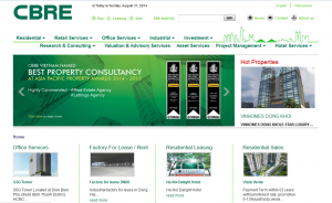 CBRE VietNam 31/08/2014 No Comments CBRE Group, Inc. (NYSE:CBG), a Fortune 500 and S&P 500 company headquartered in Los Angeles, is the world’s largest commercial real estate services and investment Chi tiết »